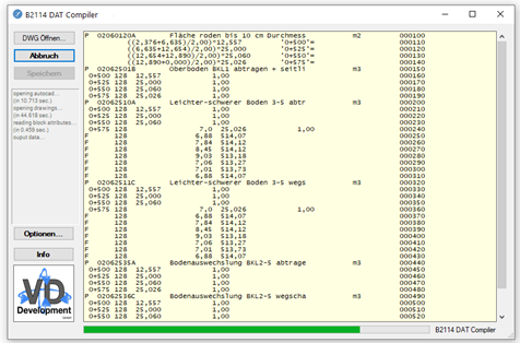 Der B2114 DAT Compiler ist ein Werkzeug, um den Link zu erstellen für die Massenermittlung zwischen Abrechnungsprofiel aus Zeichnung und dem Abrechnungsprogramm wie ABK/AUER und iTwo Bausoftware.